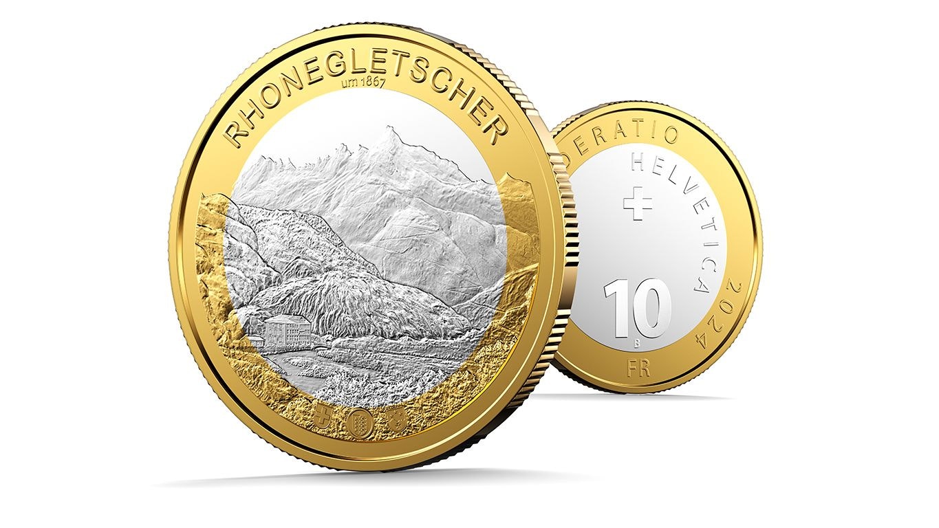 Pour clore la série en trois volets sur le thème «Glaciers suisses», Swissmint lance le 11 janvier 2024 la nouvelle pièce bimétallique «Glacier du Rhône».