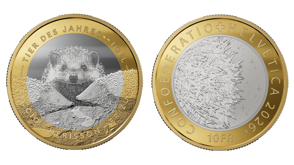 Pièce bimétallique de 10 francs « Animal de l’année : le hérisson » 2026, revers 1:1