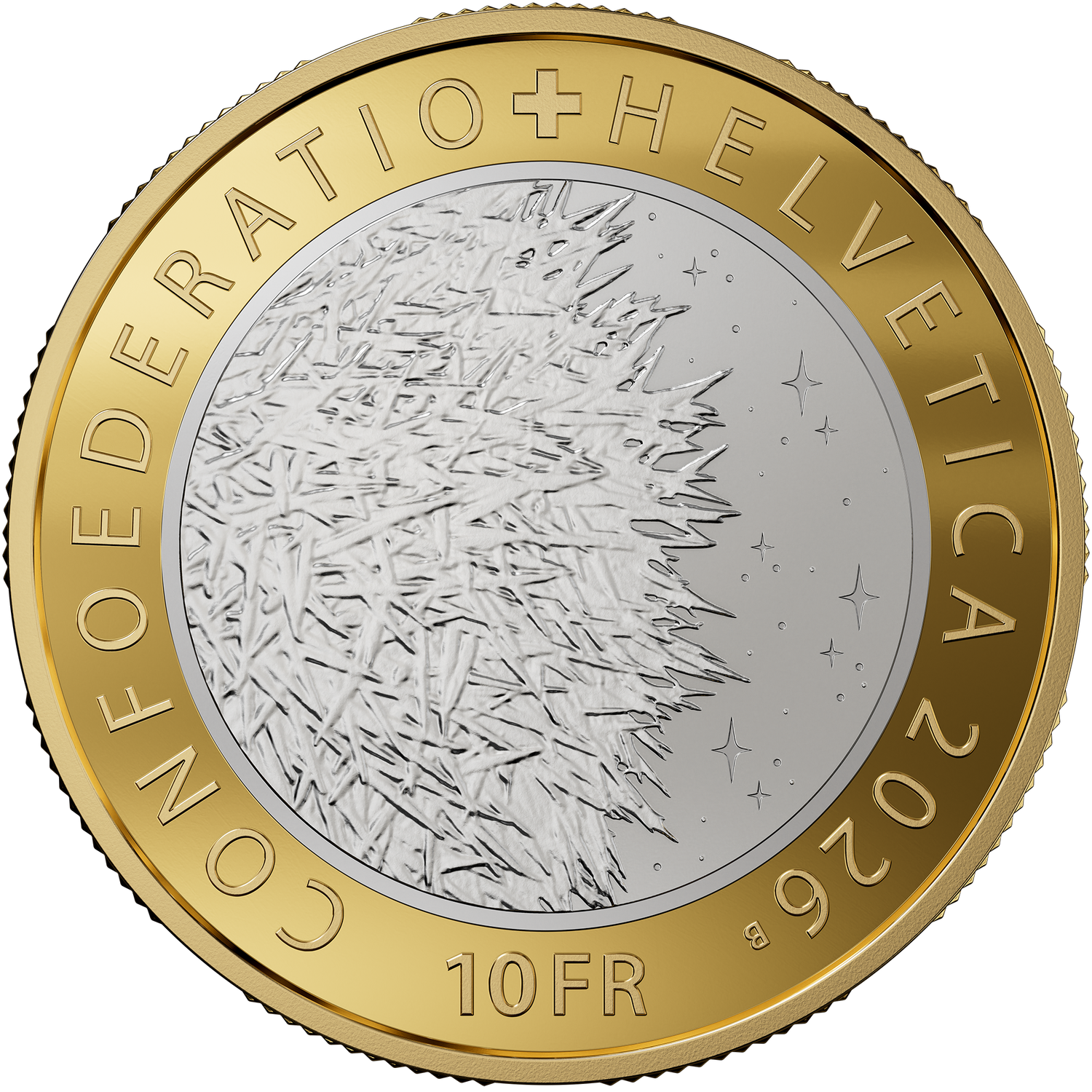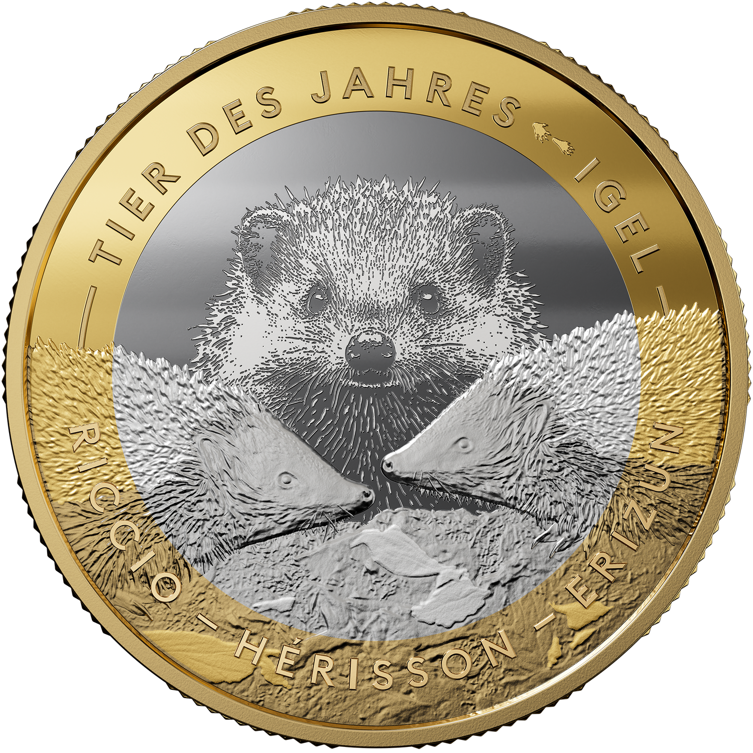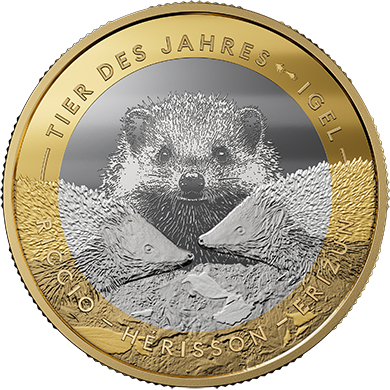 Moneta bimetallica da 10 franchi «Animale dell’anno: il riccio» 2026, diritto 1:1