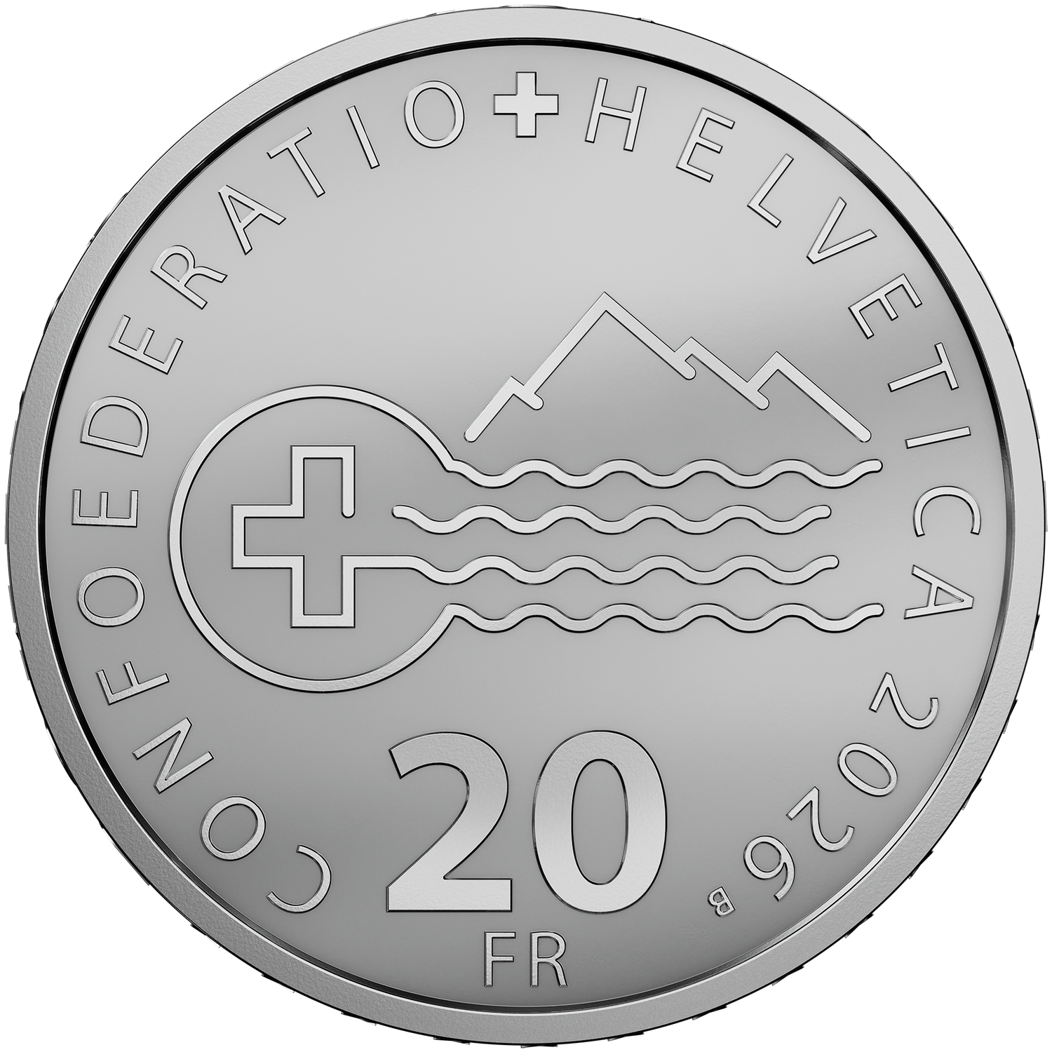 Moneta d'argento da 20 franchi «Energia idroelettrica», diritto 1:1, fluorescente